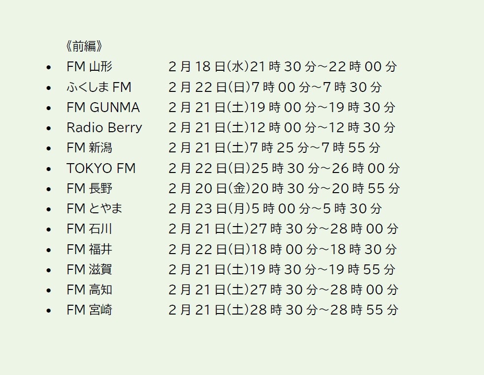 【前編】TOKYO FM:2月22日(日) 25:30〜26:00